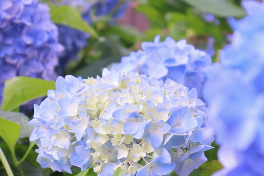 水色のあじさい 紫陽花 の写真素材